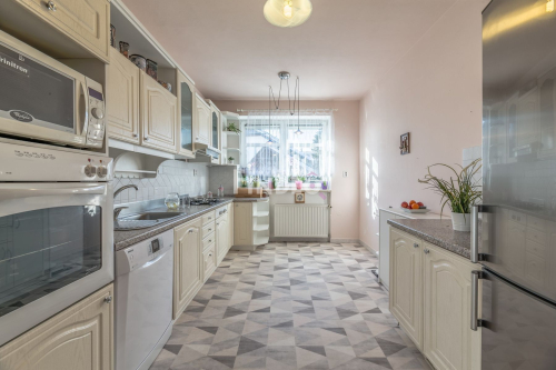 Pokud hledáte pro sebe a svoji rodinu dům poblíž Prahy a potřebujete dostatek prostoru, velké a prostorné pokoje, navíc garáž a jako bonus, skvělou a hlavně klidnou lokalitu, tak jste právě svůj nový domov našli! Tento řadový rodinný dům je ideální volbou pro rodinu s dětmi a kompromisem mezi běžnou „řadovkou“ a samostatně stojícím domem, poněvadž nabízí spoustu prostoru, lokalitu se skvělou dostupností do školy a školky a navíc, bezkonkurenční dojezdovou vzdálenost pro dojíždění za prací do Prahy nebo okolních měst. V přízemí domu se nachází velice prostorný obývací pokoj s jídelnou, jehož dominantou je krb. Obývací pokoj je propojený s kuchyní a perfektně řešenou kuchyňskou linkou, která je plně vybavena spotřebiči. Z obývací pokoje je vstup na zahradu, kde nechybí vzrostlá vegetace a dostatek místa pro děti. Vzhledem k tomu, že se jedná o krajní dům, tak přístup na zahradu je umožněn i z ulice. V přízemí se dále nachází WC, komora, kterou je možné upravit na šatnu. Nechybí zádveří a předsíň s velkou vestavěnou skříní. Po dřevěném schodišti vstoupíme do druhého patra domu a přes prostornou a vzdušnou halu vstoupíme do dvou dětských pokojů, koupelny s vanou a dvojumyvadlem a na samostatné WC. Dále je zde k dispozici velká ložnice s vestavěnou skříní a samostatnou koupelnou se sprchou. Ložnice disponuje balkónem, s krásným výhledem do okolí. Ačkoliv to není v současné době u domů obvyklé, dům nabízí i rozlehlý suterén který je pod celým domem. Zde se nachází garáž s dálkovým ovládáním vrat, dílna, sklep, prádelna a hala s infra saunou. Hostivice jsou jedním z nejrychleji rostoucích měst v okolí Prahy, za což vděčí své lukrativní poloze. Autem se pohodlně do Prahy dostanete během několika málo minut přes blízkou D6 a nebo alternativně přímo na Pražský okruh, který je vzdálen pouhých 5 km. Pro pracující v Praze, kteří raději volí jinou dopravu než je auto, zde existuje hned řada dalších možností. Vlakem se pohodlně dostanete během půl hodiny na Masarykovo nádraží a nebo pokud pracujete opačným směrem, tak vás vlaky dopraví také do Kladna, Kralup nebo Rakovníka. Kdo preferuje autobusovou dopravu, tak i zde existuje několik možností, jak se pohodlně dopravit za hranice města, aniž by bylo nutné využít automobilu. Samozřejmostí je kompletní občanská vybavenost (obchody Tesco, Lidl, zdravotnické centrum apod.), která se nachází v docházkové vzdálenosti, a to včetně základní školy a mateřské školky. To samé platí o volno časových a sportovních aktivitách, kterých je v Hostivici požehnaně. Nespornou výhodou je, že nebudete muset svým dětem dělat taxikáře, což bývá aktuálně tím největším časovým nepřítelem rodin s dětmi a rozvážet je po sportovních oddílech a kroužcích, poněvadž většina těchto aktivit se nachází v docházkové vzdálenosti. Více informací získáte na samostatném webu nemovitosti, nebo si dům projděte z pohodlí svého domova přes virtuální prohlídku!