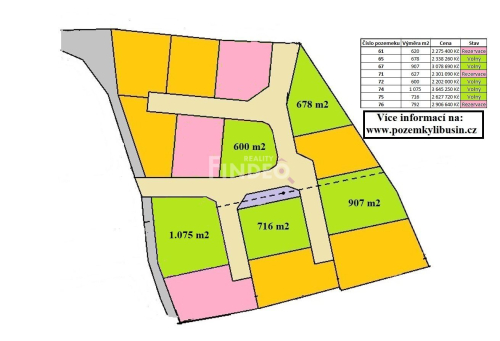 Prodej pozemku určeného pro stavbu rodinného domu. Pozemky se nachází v klidné části na okraji obce Libušín u Kladna. K Vašemu maximálnímu pohodlí jsou budovány veškeré inženýrské sítě (elektrická, vodovodní, plynovodní a kanalizační přípojka). Je realizována i příjezdová komunikace a veřejné osvětlení. Kolaudace veškeré jmenované vybavenosti se plánuje na 9/2020. Územní plán pro tuto oblast umožňuje stavbu rodinného, nebo rekreačního domu. Libušín je obec s širokou občanskou vybaveností (školka, škola, obchody, restaurace, pošta, lékař, atd.). Obec leží cca 6 km od centra Kladna. Na okraj Prahy je to autem cca 20 min. Obcí projíždí autobusová linka, která Vás dopraví do Kladna za cca 20 minut, odkud navazují další linky do Prahy. Pro spojení do Prahy lze využít také vlakového spojení z Kladna. V oblasti nabízíme pozemky o výměrách 600 – 1.075m². Poloha pozemku nabízí propojení bydlení se sousedící přírodou, neboť les s rekreační zónou a jezírkem, budete mít takřka za plotem. V rámci služeb nabízíme právní servis, který zajišťuje advokát pojištěný pro případ odpovědnosti za škodu způsobenou poskytováním právních. Samozřejmostí je i zařízení hypo-úvěru za velmi výhodných podmínek. V případě zájmu volejte, nebo zašlete sms s údaji o inzerované nemovitosti, rád Vám zavolám.
