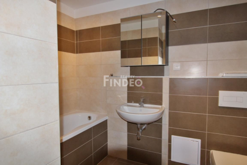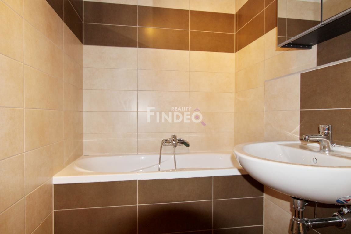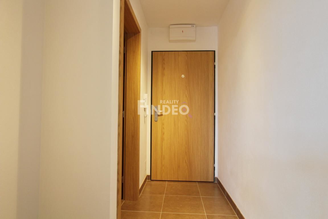 FINDEO Reality Vám nabízí pronájem nového bytu 1+kk s balkónem o velikosti 32m2, (+2m2 balkón), který se nachází ve 3. NP pětipatrové novostavby bytového domu s výtahem v Hostivicích (Praha - Západ). V bytě je plastové okno včetně dveří na balkón. Kuchyňská linka je vybavena dvouplotýnkovou varnou deskou, elektrickou troubou s mikrovlnnou troubou, digestoří a vestavěnou chladničkou. Na podlahách je plovoucí podlaha a dlažba. Koupelna je s vanou a toaletou. K bytu náleží sklepní kóje v suterénu domu o velikosti 3m2. V ceně nájmu je parkovací stání nacházející se rovněž v suterénu domu. Vozidlo se dostává do prostoru garáží výtahem. V domě je vlastní plynová kotelna. V místě je školka, škola, MHD, pečovatelská služba, lékaři, restaurace, zkrátka veškerá občanská vybavenost.